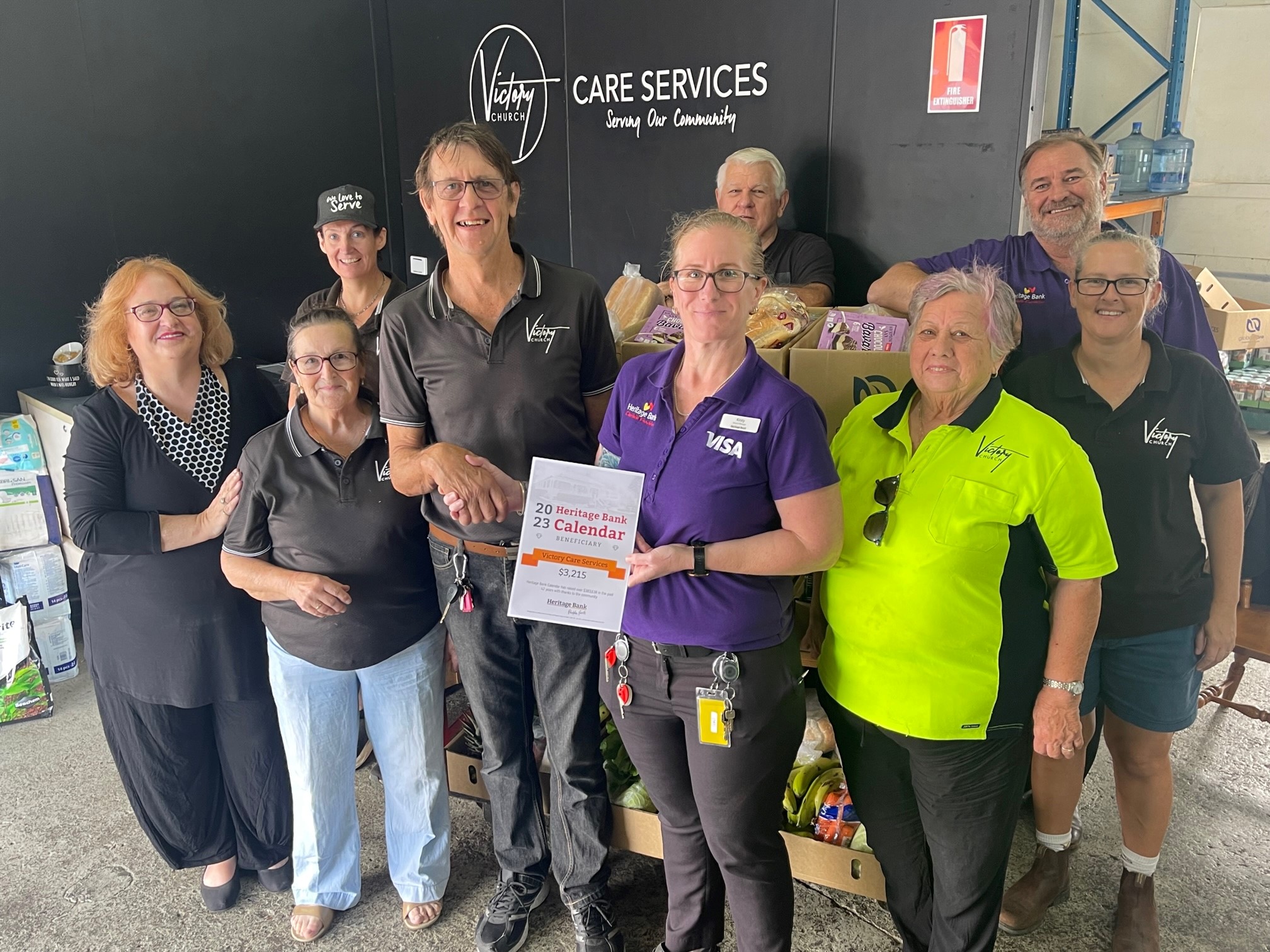 Heritage recently presented Victory Care Services with a cheque of over $3,215 towards hampers for people experiencing food insecurity throughout the Gympie region.